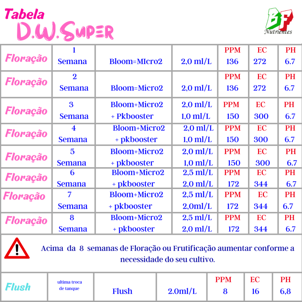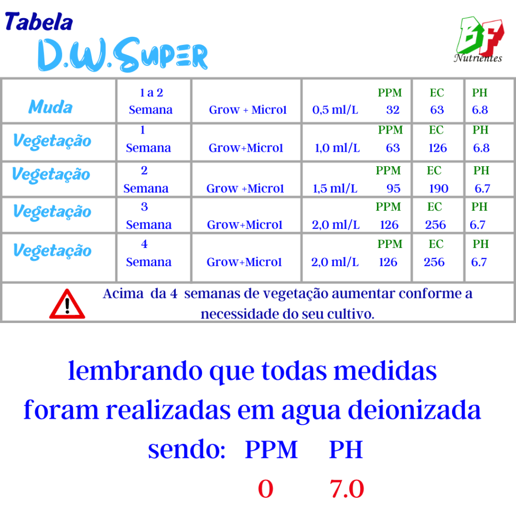 D.W.Super (hidroponia) TABELA.